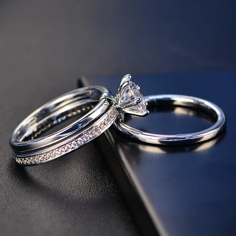 Best 2019 Luxury Female White Bridal Wedding Ring Set Real Sterling Silver 925 Jewelry With Zircon Stone