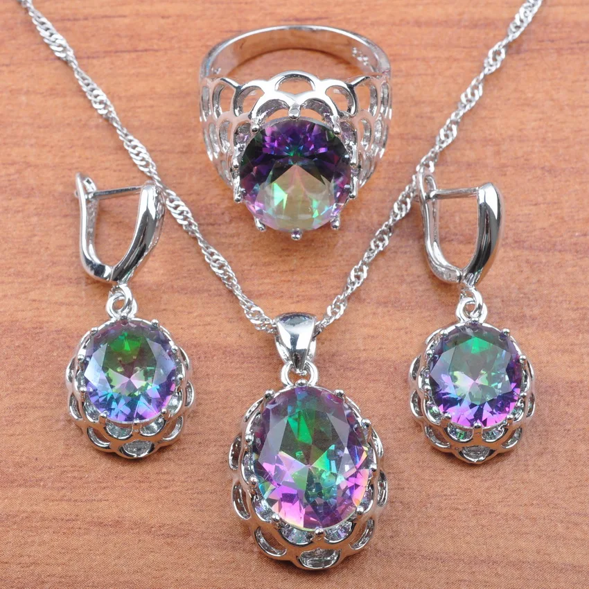 Best 925 Sterling Silver Jewelry Sets Rainbow Zirconia Lady Wedding Jewelry Earrings Necklace Pendant Ri