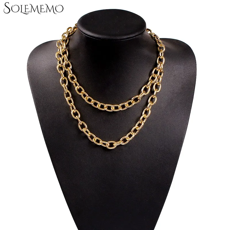 Best Solememo Trendy Golden Big Link Chain Necklace For Women Party Bar layered Collar Choker Necklace J