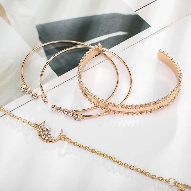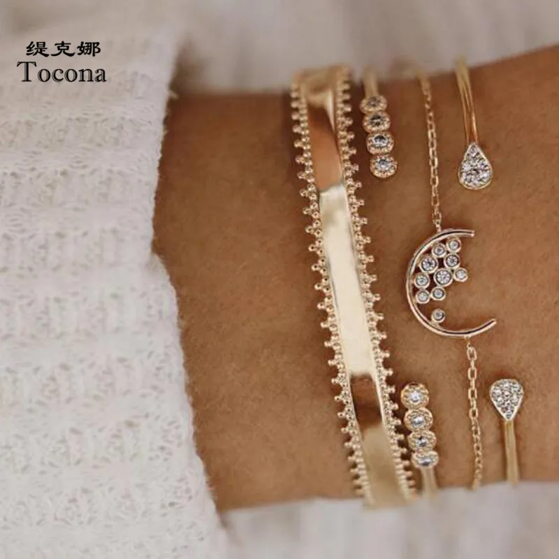 Buy Tocona 4 Pcs/set Gold Moon Star Bracelets for Women Geometry Crystal Opal Boho Cuff Bracelet Bangle