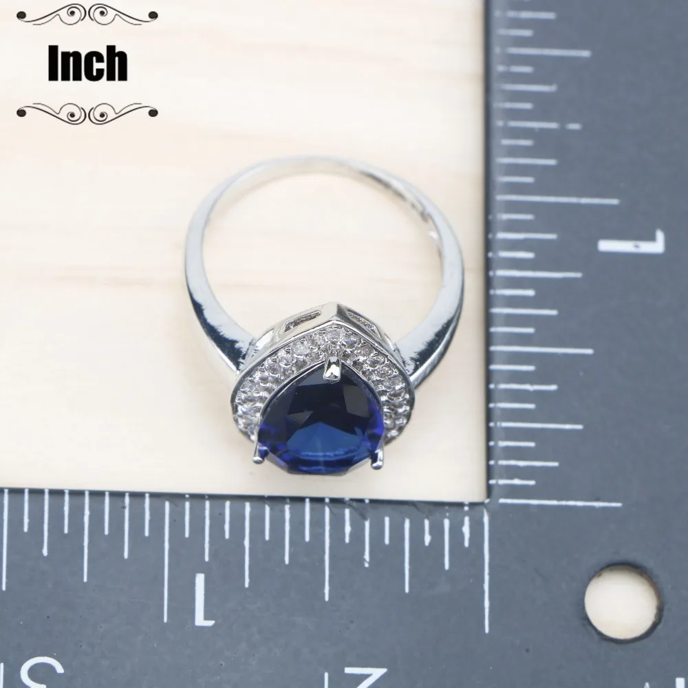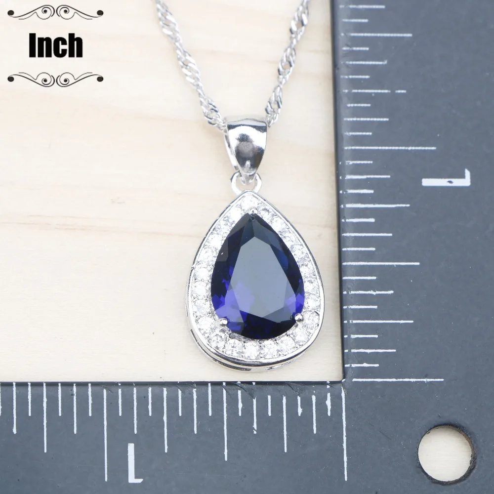 Buy Blue Zirconia Silver 925 Costume Jewelry Sets For Women Pendant Necklace Rings Clips Earrings Set V