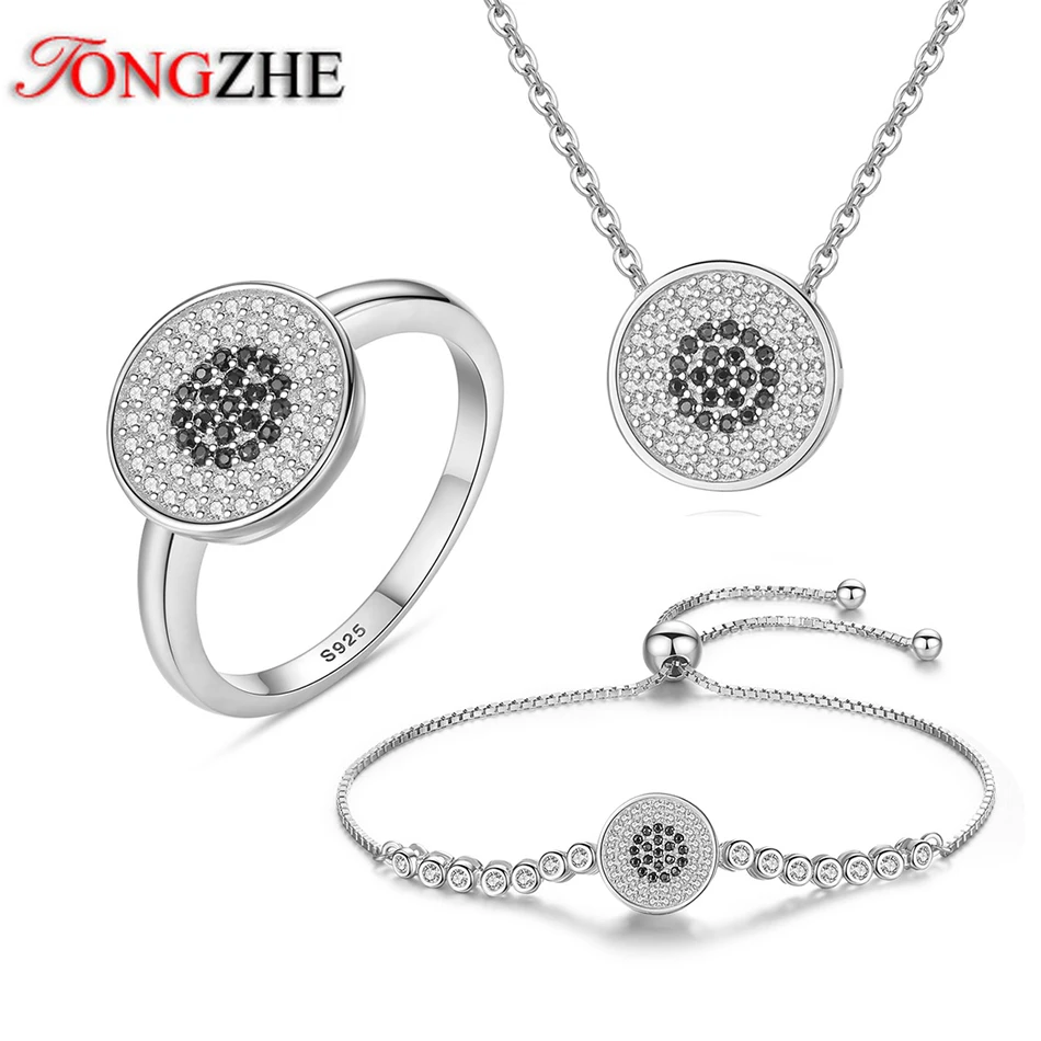 Promo TONGZHE Luxury Women Jewelry Set Turkey Evil Eye Black Zirconia 925 Sterling Silver Bracelet/Neckla