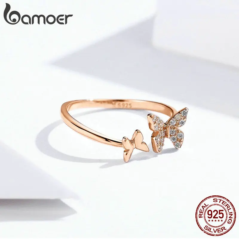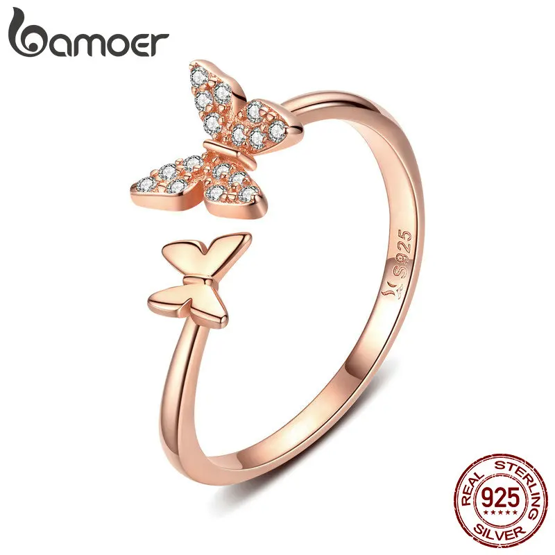 New BAMOER Hot Sale 925 Sterling Silver Dazzling CZ Butterfly Open Finger Ring for Women Fashion Sterli